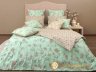 Комплект постельного белья пришёл аккуратно упакованным, чистым. Только открыли и пока не стирали. Ткань приятная на ощупь, не очень плотная, но для бязи нормально. Швы аккуратные, нитки нигде не торчат. Смотрится очень классно. Очень приятный принт фисташкового цвета.