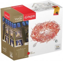 VEGAS 24V Электрогирлянда-конструктор "Занавес" 96 красных LED ламп, 6 нитей прозрачный провод, 1*2 м /32/4 55021